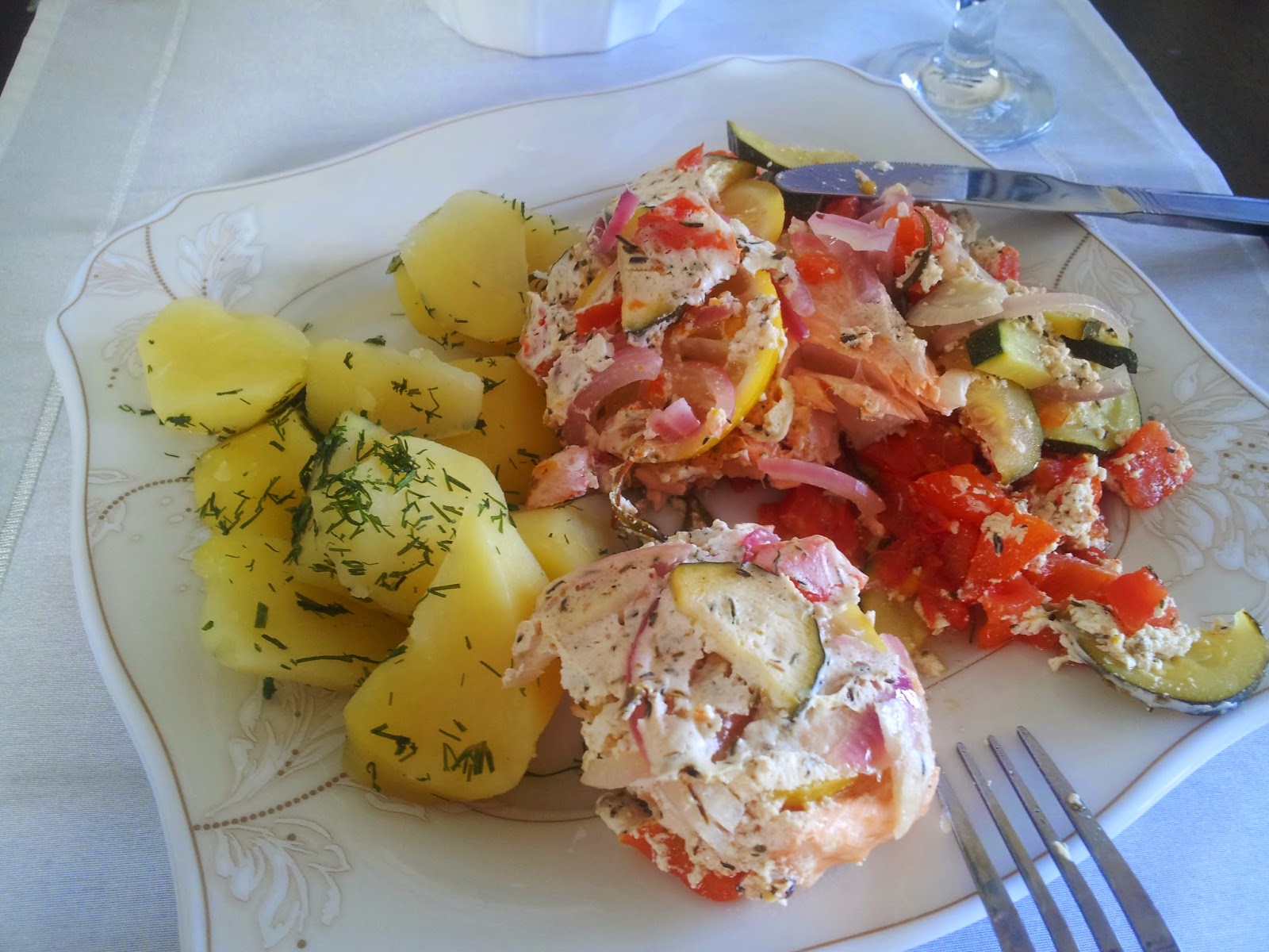Dzisiaj proponuję lekkie, zdrowe i pożywne danie, łososia w trochę innym wydaniu. Oryginalny przepis pochodzi z Kuchni Lidla, zmodyfikowałam go jednak nieco na potrzeby diety cukrzycowej. Zapraszam!