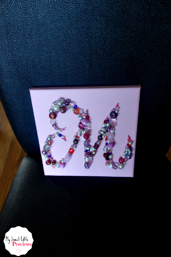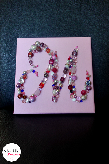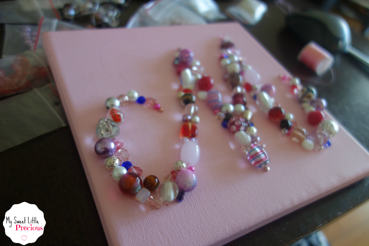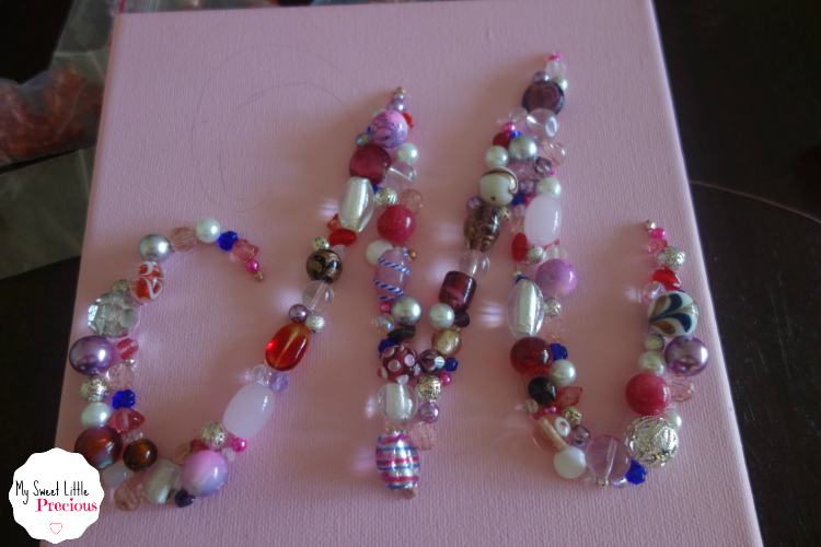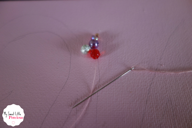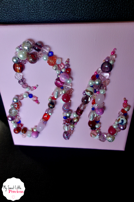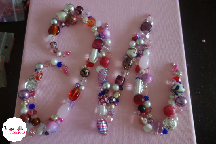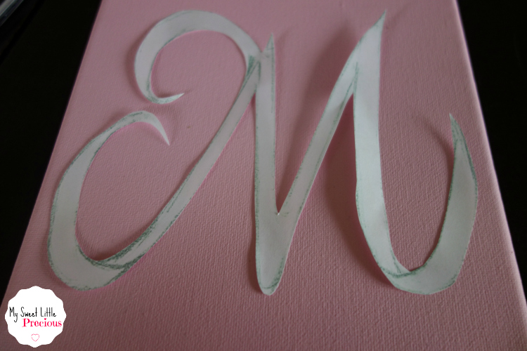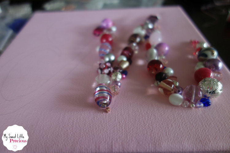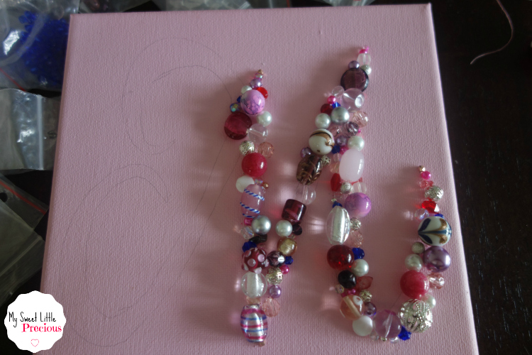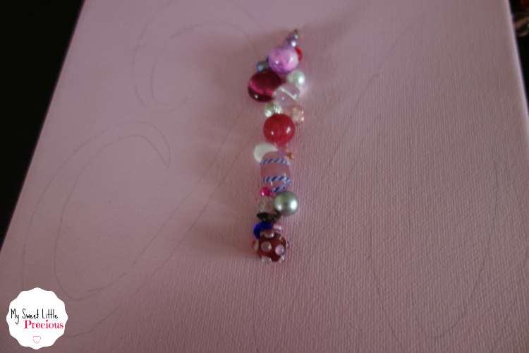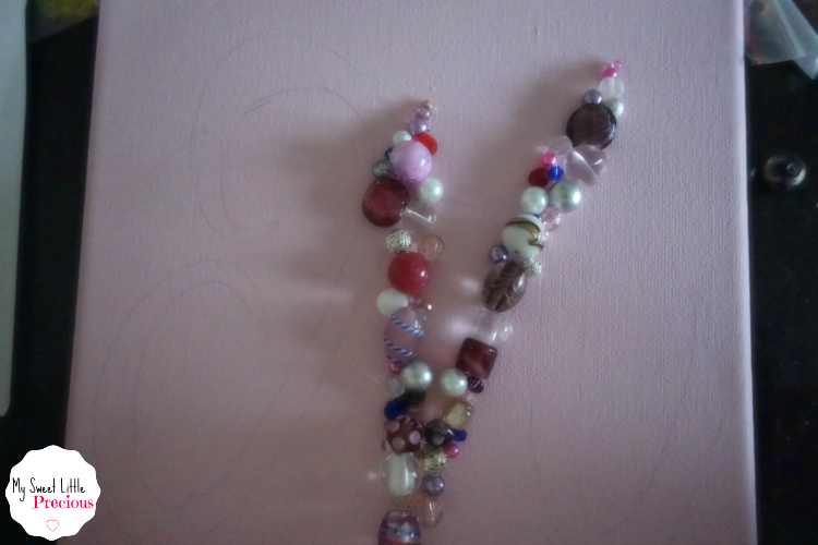 Literkę, którą miałam zamiar „wyszyć” koralikami najpierw wydrukowałam, wycięłam i odrysowałam ołówkiem na podobraziu.