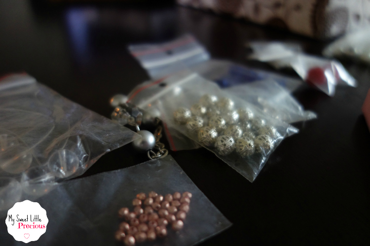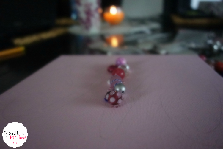 Wybrałam punkt startowy, dobierając koraliki tak, by 'ostre’ krawędzie były małymi kropeczkami, a później dopasowywałam inne 'na oko’.