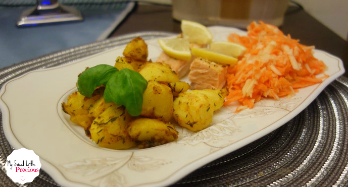 Składniki na to nieskomplikowane danie to ziemniaki i łosoś (plus przyprawy i odrobina oleju). Przygotowanie również jest niezwykle proste, a uwierzcie mi, warto poznać przepis na te złote i chrupiące ziemniaczki. Jest on następujący: