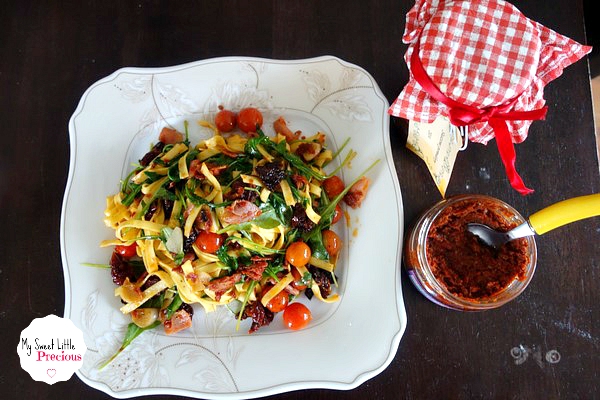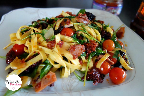 Kulinarnie: Tagliatelle z prosciutto, suszonymi pomidorami i rukolą