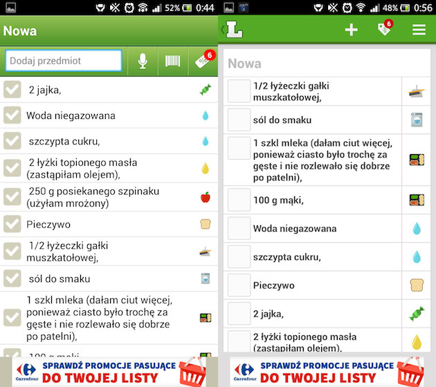 To nie jest typowa aplikacja dotycząca kalorii, diet, treningów. Bo dotyczy zakupów. Ale czymże byłaby dieta bez nich? Dzięki niej możemy wejść do sklepu nie bojąc się, że wyjdziemy z niego z toną słodyczy. Jest lista – trzymamy się jej – nie pozwalamy pokusom przeszkodzić nam w osiąganiu marzeń. Listy są łatwe w redagowaniu, zawierają produkty w promocji z różnych sklepów, ponadto wiele stron internetowych z przepisami udostępnia automatyczne listy zakupów dla danego dania – warto z tego skorzystać!