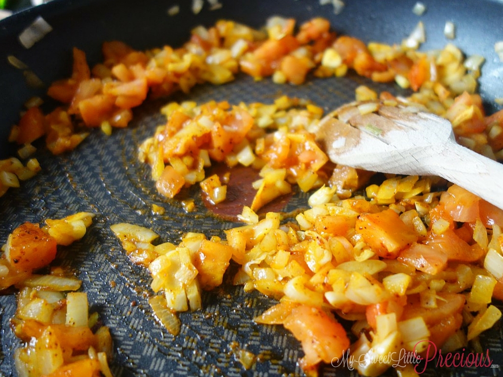 | Danie już na początku za sprawą przypraw nabiera pięknego koloru |