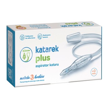 Podobnie jak Katarek+ posiada w zestawie aparat i dwie końcówki do oczyszczania nosa: