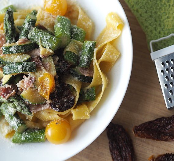 Kolejna super prosta i naprawdę przepyszna zupa krem. Cebulę wystarczy zeszklić na oliwie z dodatkiem odrobiny cukru i dużej ilości ziół – u mnie króluje tu tymianek. Do tego dodajemy 2 pokrojone w kostkę gruszki lub słodkie jabłka (choć osobiście preferuję pomidorówkę z dodatkiem gruszek). Poddusić do miękkości, zalać pomidorami, dodać wodę (z 1,5 litra) lub bulion, dorzucić koncentrat pomidorowy i pogotować razem 20 minut. Posmakować, doprawić i zblendować. Można podawać z kleksem śmietany, ale nie jest to konieczne. U nas tradycyjnie – pomidorowa inaczej, ale z makaronem 🙂